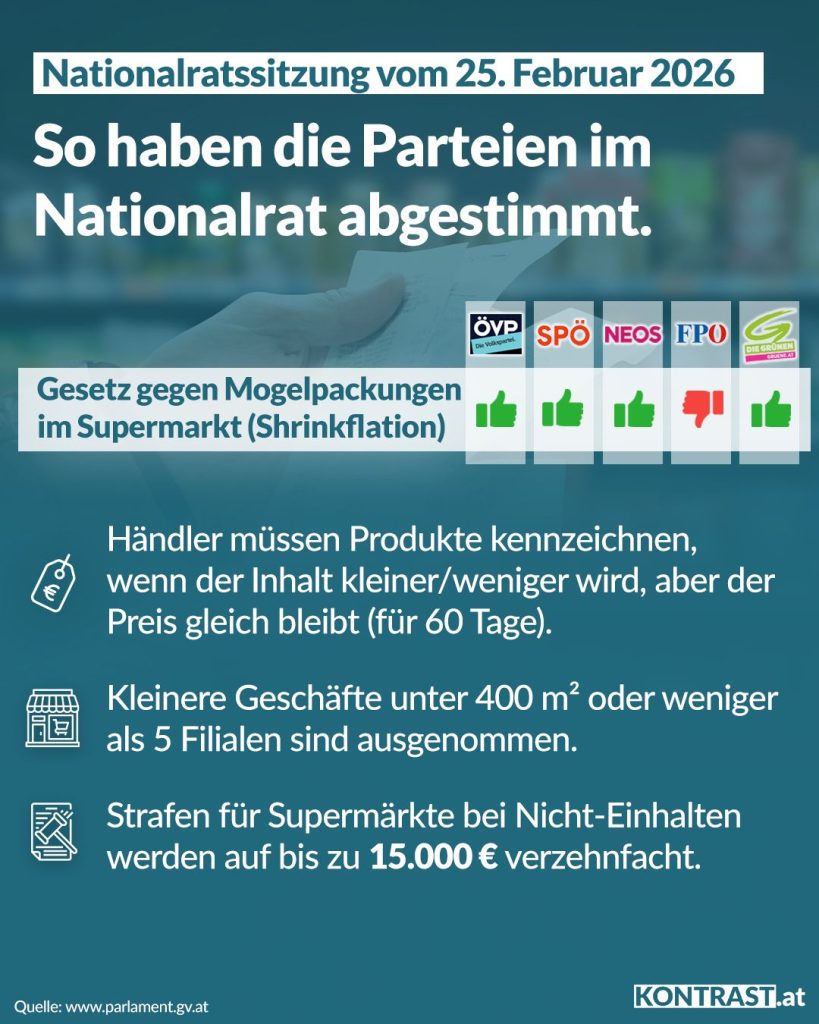 Aktuell sind nicht nur die Preise im Supermarkt auf einem sehr hohen Niveau, sondern Lebensmittelkonzerne reduzieren zusätzlich den Inhalt ihrer Produkte. Der Preis bleibt aber gleich. Die Arbeiterkammer spricht von einer „heimlichen Abzocke“. Der Fachbegriff: Shrinkflation. Das Parlament hat auf Drängen der Sozialdemokrat:innen eine Kennzeichnungspflicht für Supermärkte beschlossen. Wer dagegen verstößt, dem drohen empfindliche Strafen. Vorbild sind Länder wie Deutschland und Frankreich. Die FPÖ hat als einzige Partei gegen das Gesetz gestimmt.