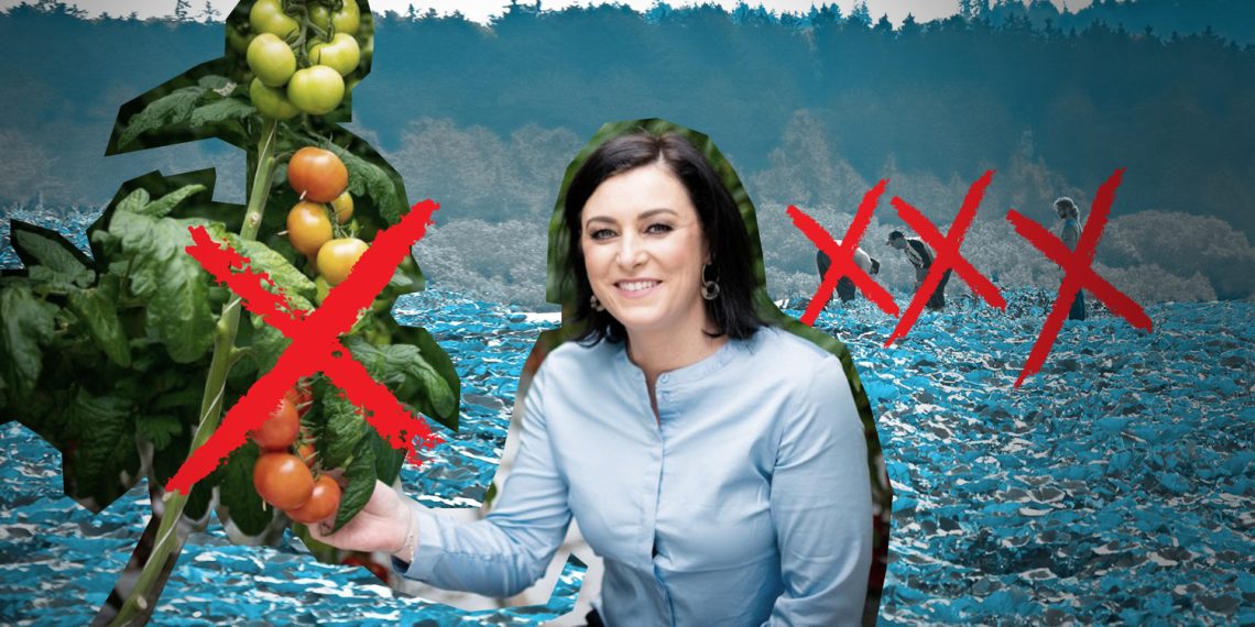 Landwirtschaftsministerin Elisabeth Köstinger (ÖVP) posiert gerne mit Obst. Wie es denen geht, die es ernten, interessiert sie weniger.