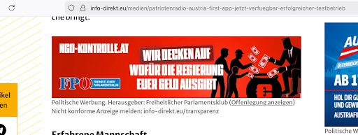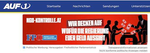 Seit Mitte November 2025 hat der Freiheitliche Parlamentsklub 50.000 Euro an insgesamt neun FPÖ-nahe bis rechtsextreme Medien für Inserate bezahlt – und zwar für eine einzige Kampagne: eine gegen Vereine und NGOs. Das weisen die Transparanz-Bekanntmachungen unter den jeweiligen Werbebannern aus. Am meisten erhielt der Sender Auf1, nämlich satte 19.200 Euro. Auf1-Inhalte umfassen Verschwörungstheorien zu Chemtrails, der Mondlandung und der Frage, ob die Erde eine Scheibe ist. Auch rassistische Inhalte werden verbreitet. Auf1-Chef Stefan Magnet hält die Europäer für „geistig und biologisch“ einzigartig und spricht von einem „Krieg gegen die Weißen“. Der österreichische Verfassungsschutz stuft den Linzer Sender als rechtsextrem ein. Auch der deutsche Verfassungsschutz das Medium als „rechtsextremistischen Verdachtsfall“ ein. Sowohl der Gründer und Chefredakteur Stefan Magnet als auch „Generalsekretär“ Andreas Retschitzegger waren in ihrer Jugend im neonazistischen Bund freier Jugend (BfJ) aktiv.