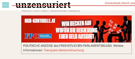 | Unzensuriert.at | FPÖ Parlamentsklub | 9.600 Euro |