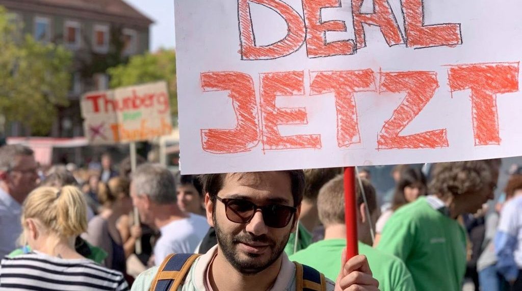 Auf der letzten Klimademo bin ich mit einem „Green New Deal Jetzt“-Schild mitgelaufen. Das habe ich getan, weil ich es sehr bedauerlich finde, dass er im (linken) Diskurs in Deutschland kaum eine Rolle spielt. Dabei müsste solch einer eine zentrale Rolle in der Diskussion zum Klimaschutz einnehmen und nicht eine CO2-Steuer.