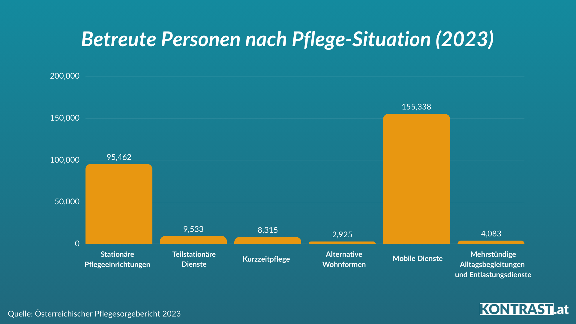 Insgesamt werden 269.800 Personen österreichweit betreut, etwas mehr als die Hälfte davon von mobilen Diensten, also zuhause.