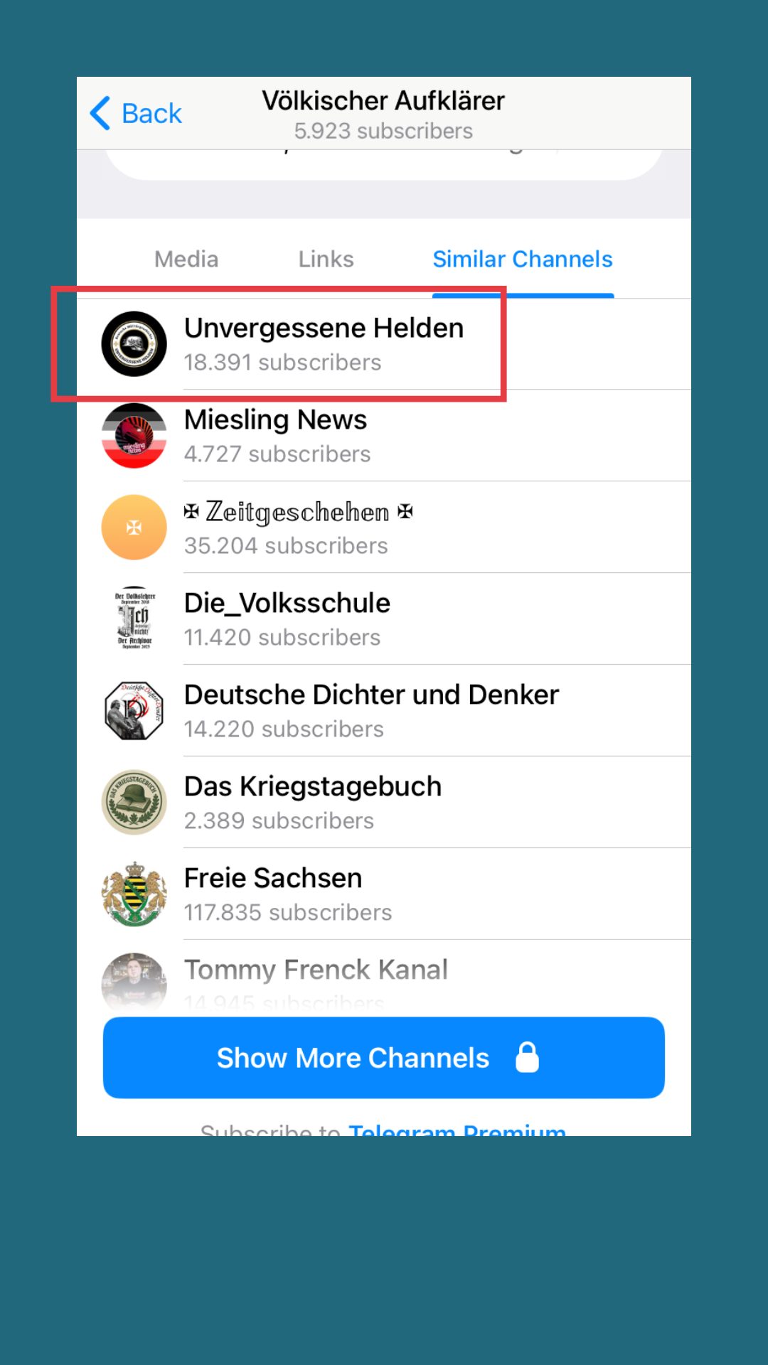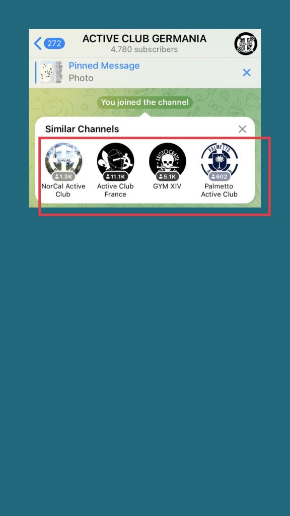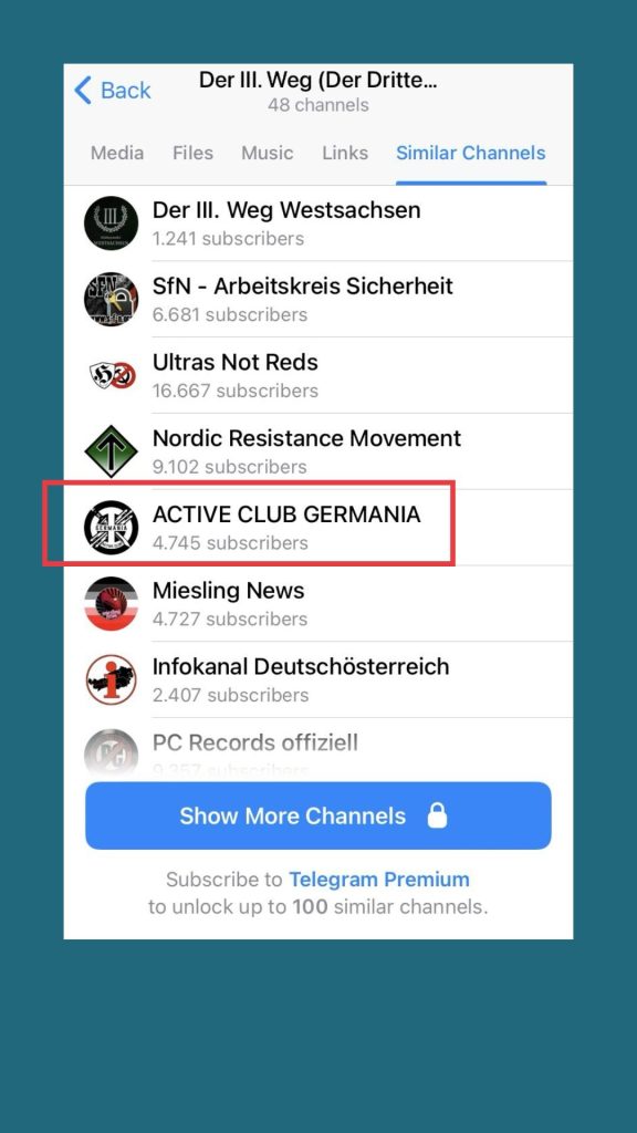 Nachdem wir dem „Active Club Germania“ beigetreten sind, wurden uns direkt sehr viele weitere dieser „Active Clubs”-Kanäle vorgeschlagen.