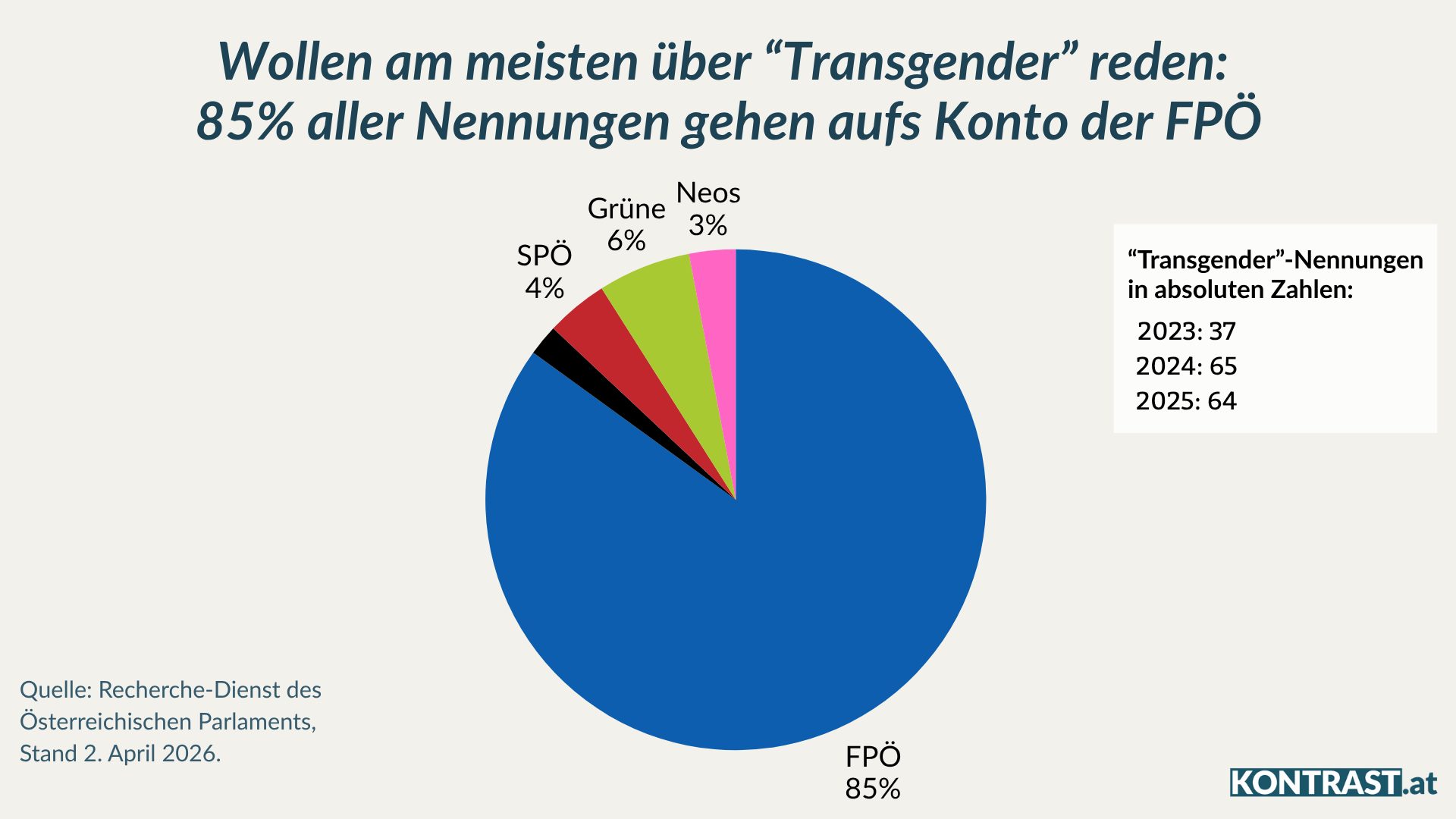 Mehr als die Hälfte der parlamentarischen Anträge und Anfragen zu „Transgender“ stammen von der FPÖ