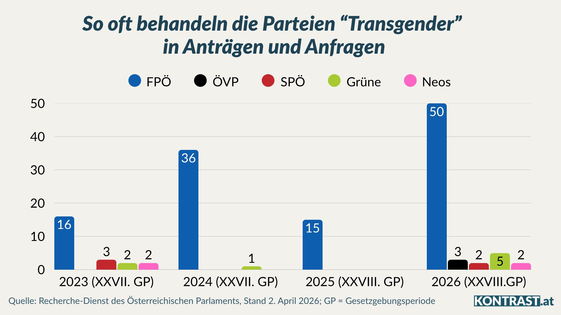 Grafik: So oft behandeln die Parteien Transgender in Anträgen und Anfragen (Grafik: Kontrast.at)