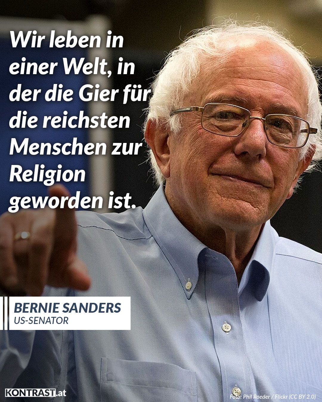Zitat: Wir leben in einer Welt, in der die Gier für die reichen Menschen zur Religion geworden ist. Bernie Sanders