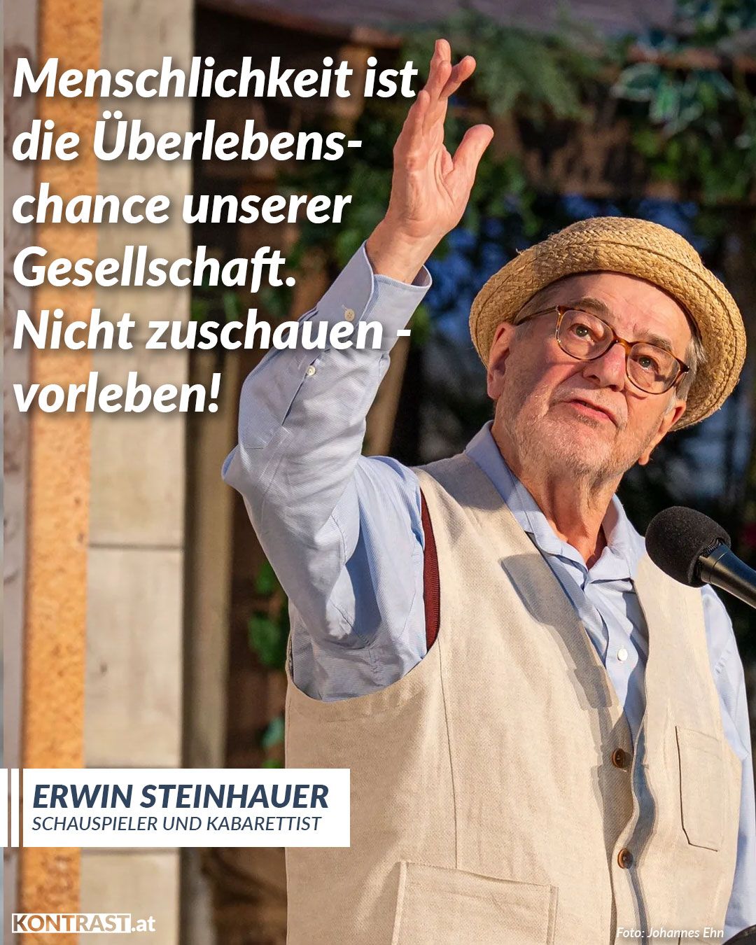 Zitat: Menschlichkeit ist die Überlebenschance unserer Gesellschaft. Nicht zuschauen – vorleben! Erwin Steinhauer