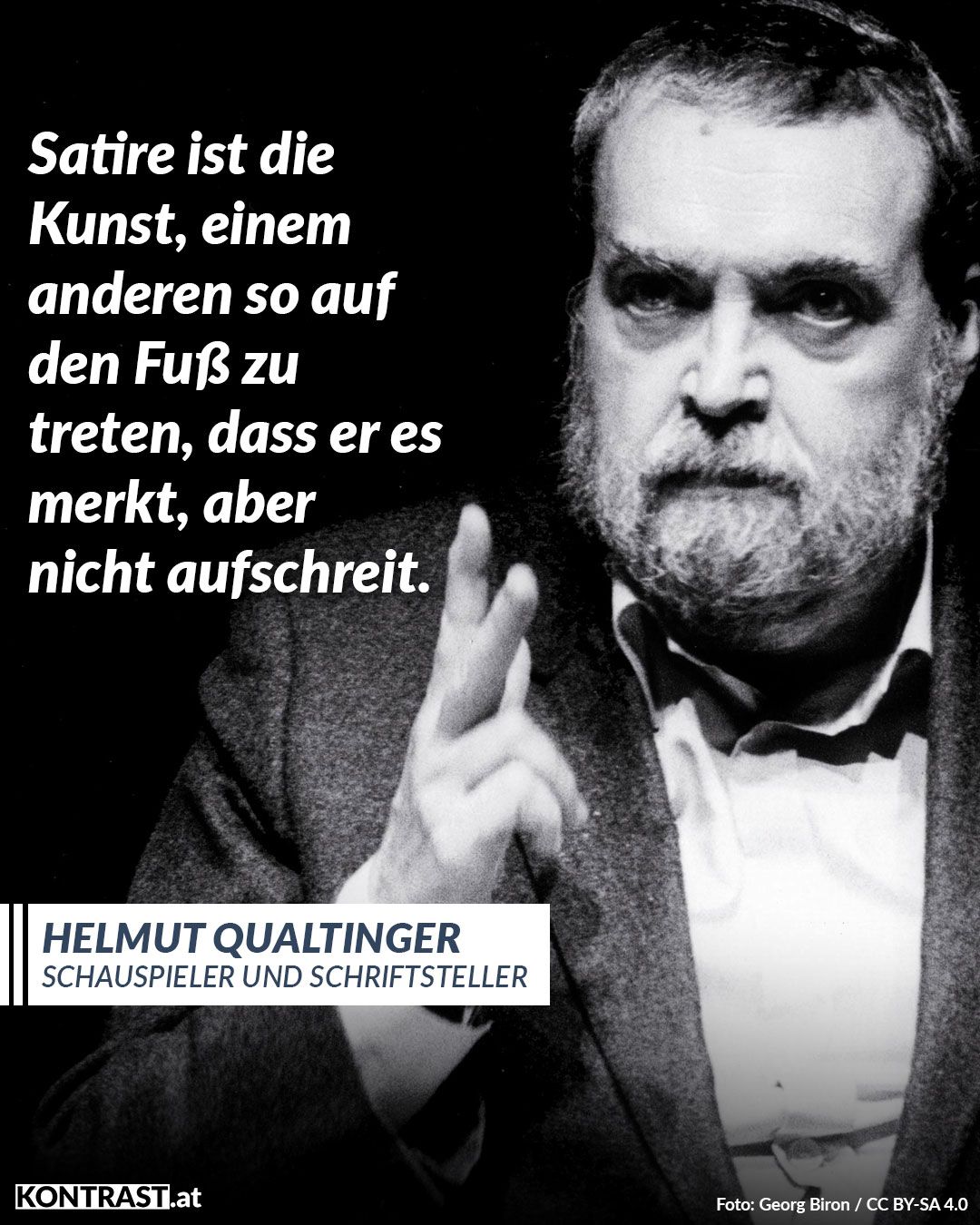Zitat: Satire ist die Kunst, einem anderen so auf den Fuß zu treten, dass er es merkt, aber nicht aufschreit. Helmut Qualtinger