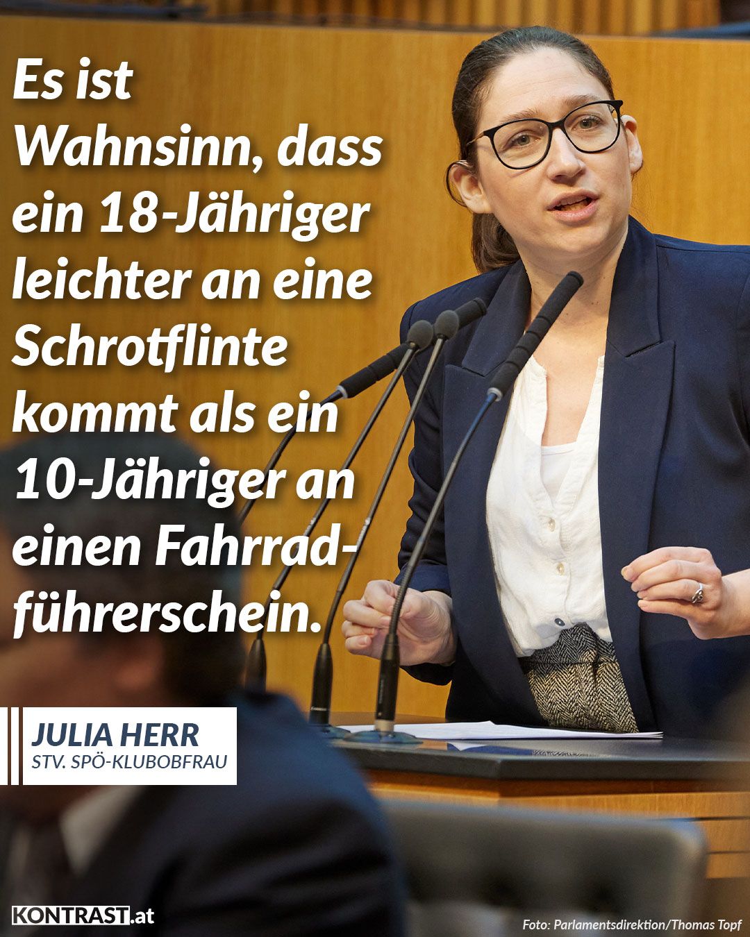 Zitat: Es ist Wahnsinn, dass ein 18-Jähriger leichter an eine Schrotflinte kommt als ein 10-Jähriger an einen Fahrradführerschein. Julia Herr