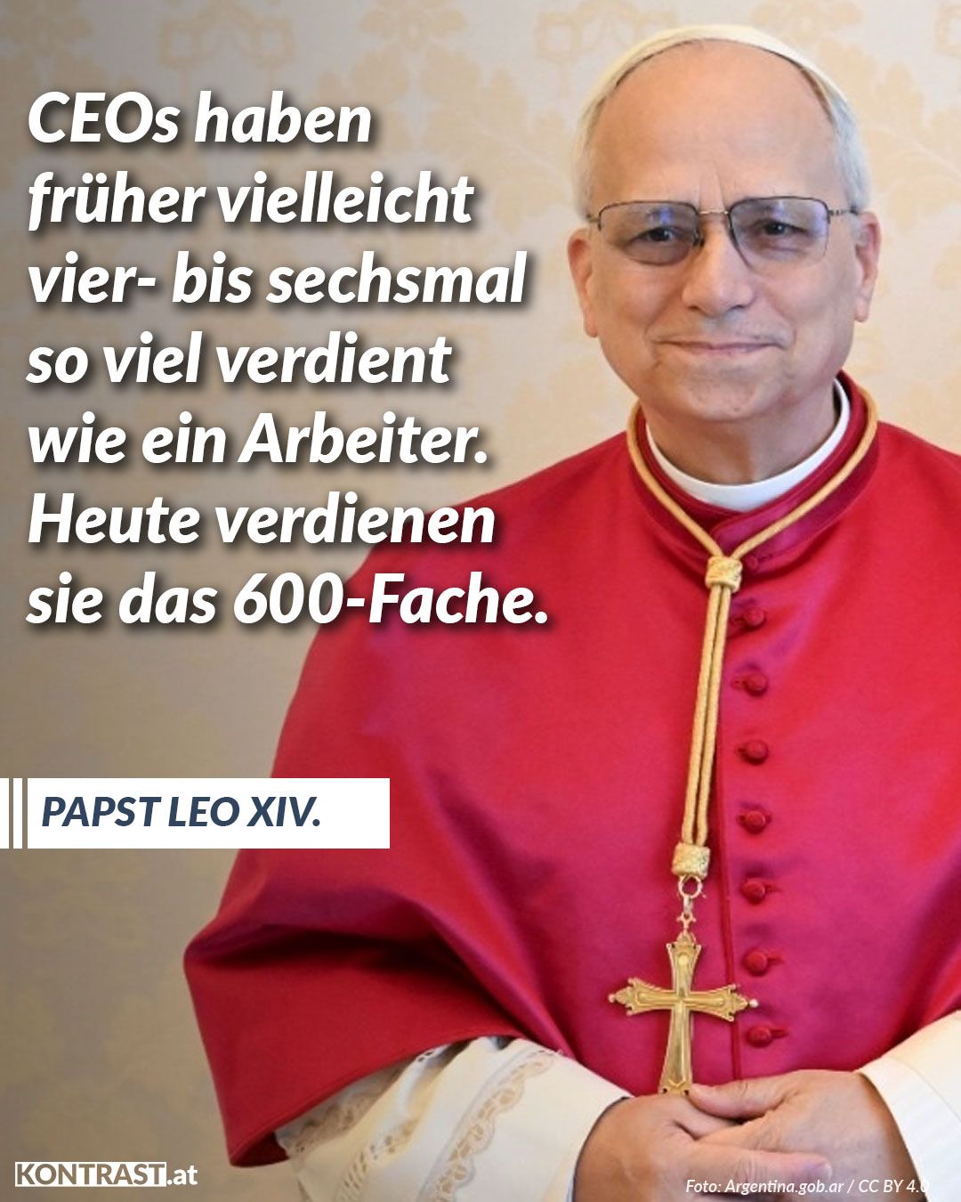 Zitat: CEOs haben früher vielleicht vier- bis sechsmal so viel verdient wie ein Arbeiter. Heute verdienen sie das 600-Fache. Papst Leo XIV.