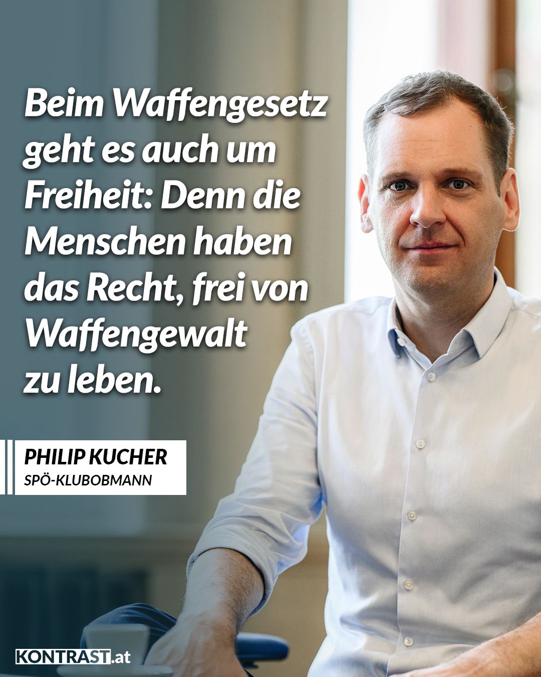 Zitat: Beim Waffengesetz geht es auch um Freiheit: Denn die Menschen haben das Recht, frei von Waffengewalt zu leben. Philip Kucher