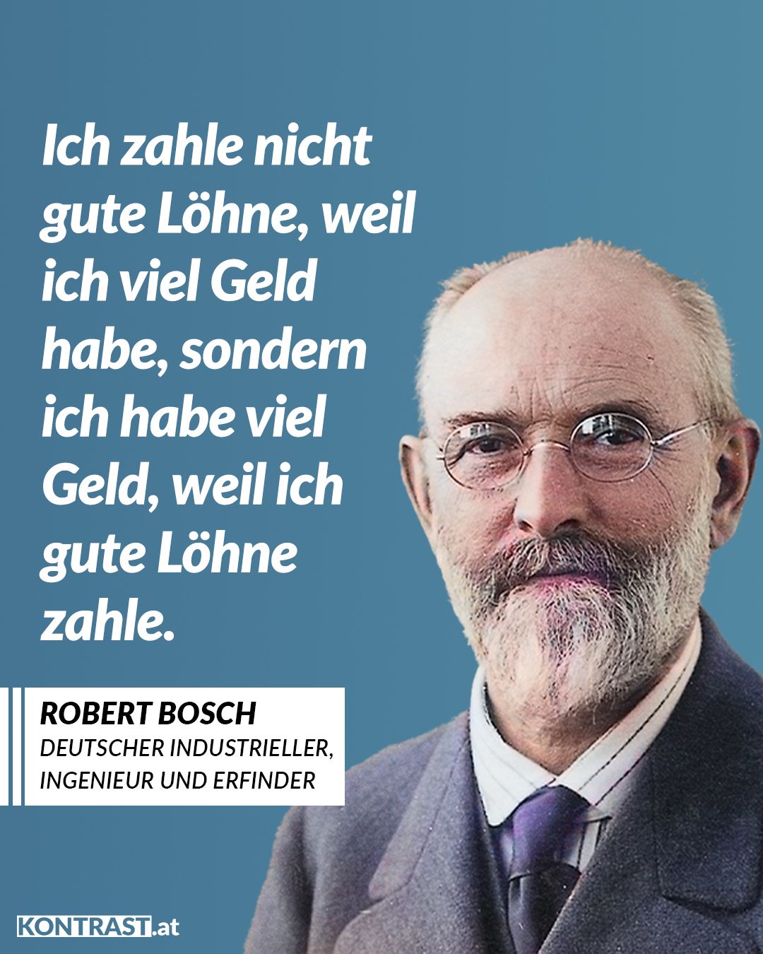 Zitat: Ich zahle nicht gute Löhne, weil ich viel Geld habe, sondern ich habe viel Geld, weil ich gute Löhne zahle. Robert Bosch
