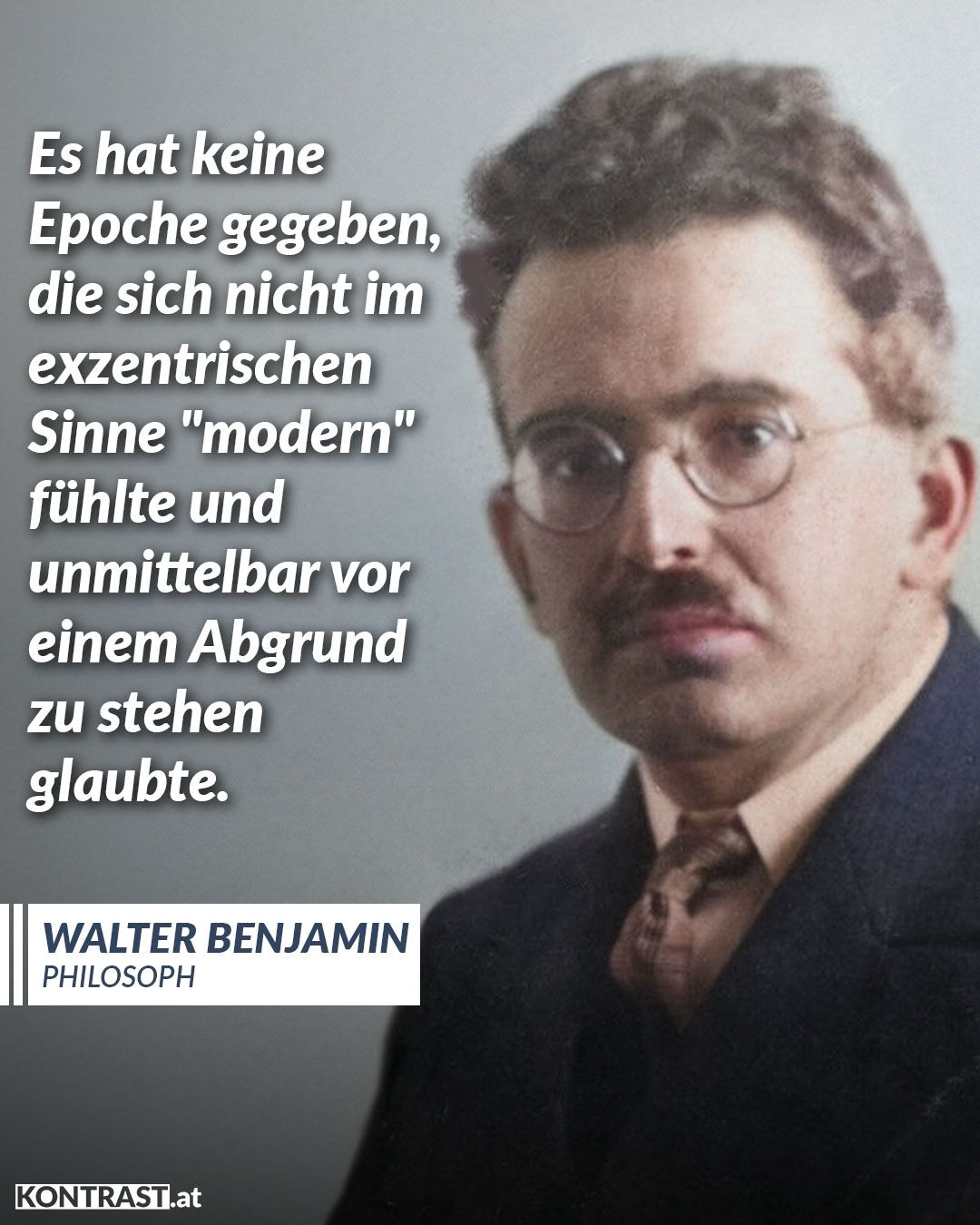 Zitat: Es hat keine Epoche gegeben, die sich nicht im exzentrischen Sinne „modern“ fühlte und unmittelbar vor einem Abgrund zu stehen glaubte. Walter Benjamin