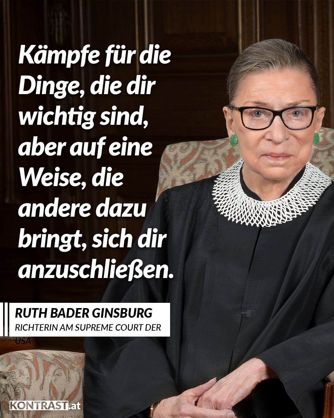 Zitat: Kämpfe für die Dinge, die dir wichtig sind, aber auf eine Weise, die andere dazu bringt, sich dir anzuschließen. Ruth Bader Ginsburg