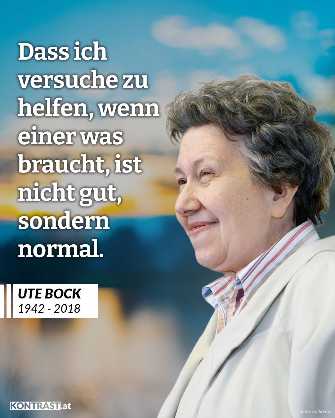 Zitat: Dass ich versuche, zu helfen, wenn einer was braucht, ist nicht gut, sondern normal. Ute Bock